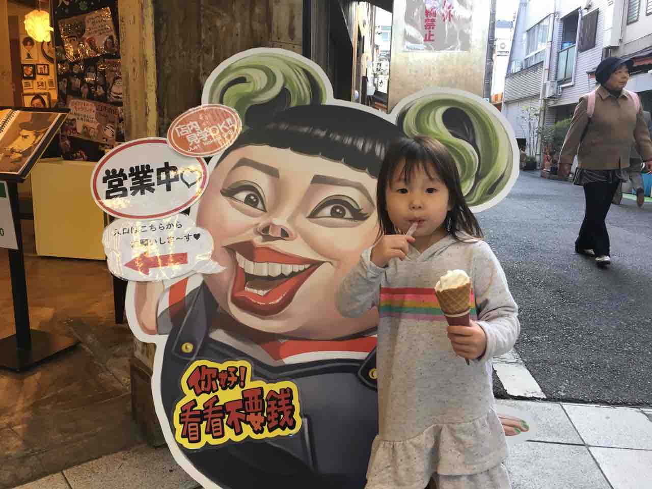 孫たちは興奮していてほとんど食べず。食事中も商店街の往来を邪魔して遊んでいるだけだ。