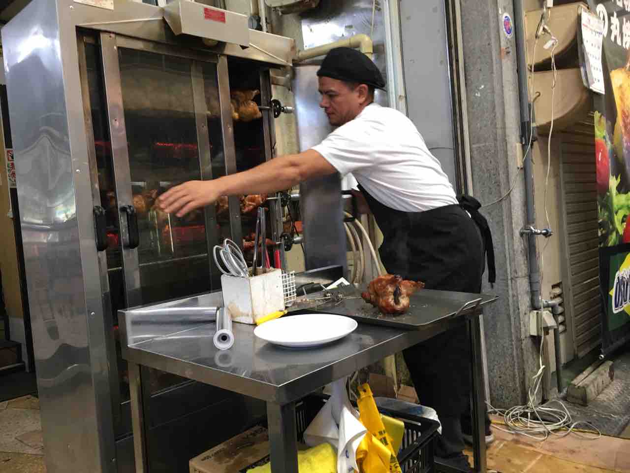 大須で何を食べるか考えて、バギーが置けるオープンテーブルの店を探し。そして結局オッソ・ブラジルにする。