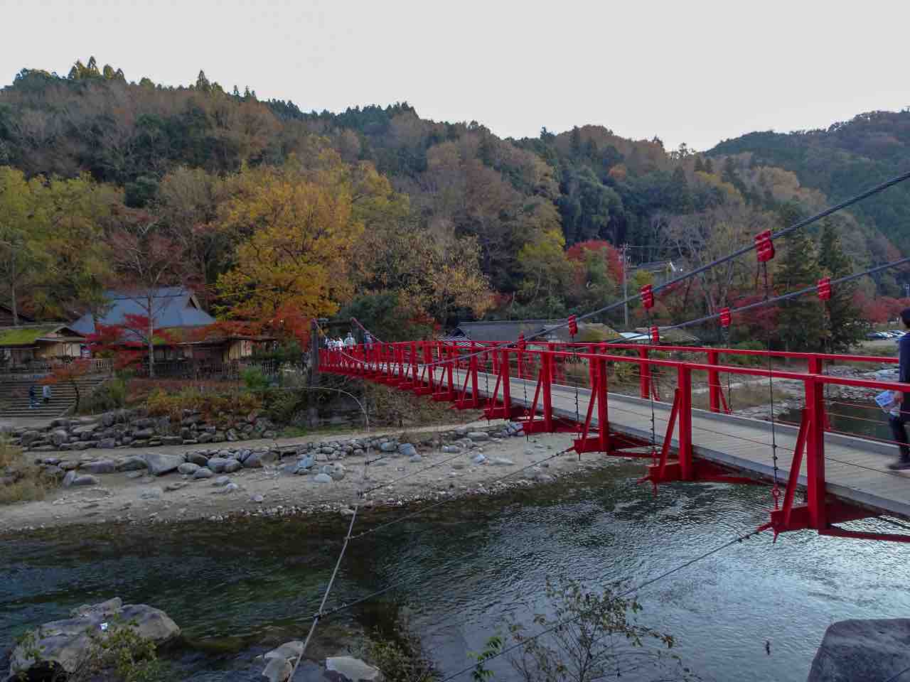 バスはどんどん山に向かうがそれほど起伏があるわけではない。途中、鞍ケ池公園という子供が喜びそうな公園を超えて概ね1時間で目的地の香嵐渓のバス停に着く。目の前に足助役場があり、駐車場でカタログを配布している。