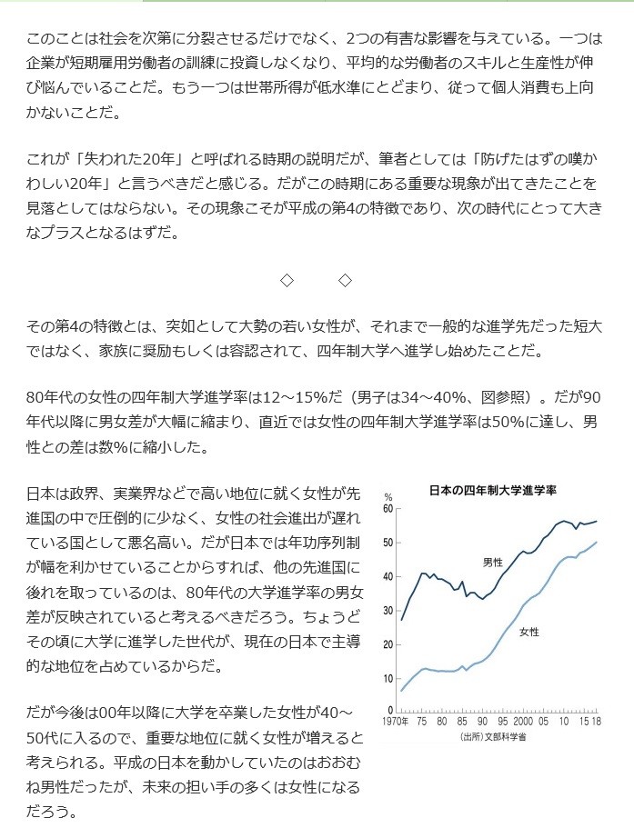 女性がリーダーになる時代が日本で遅いのが、必ずしも学歴に偏差しているとも思わない。