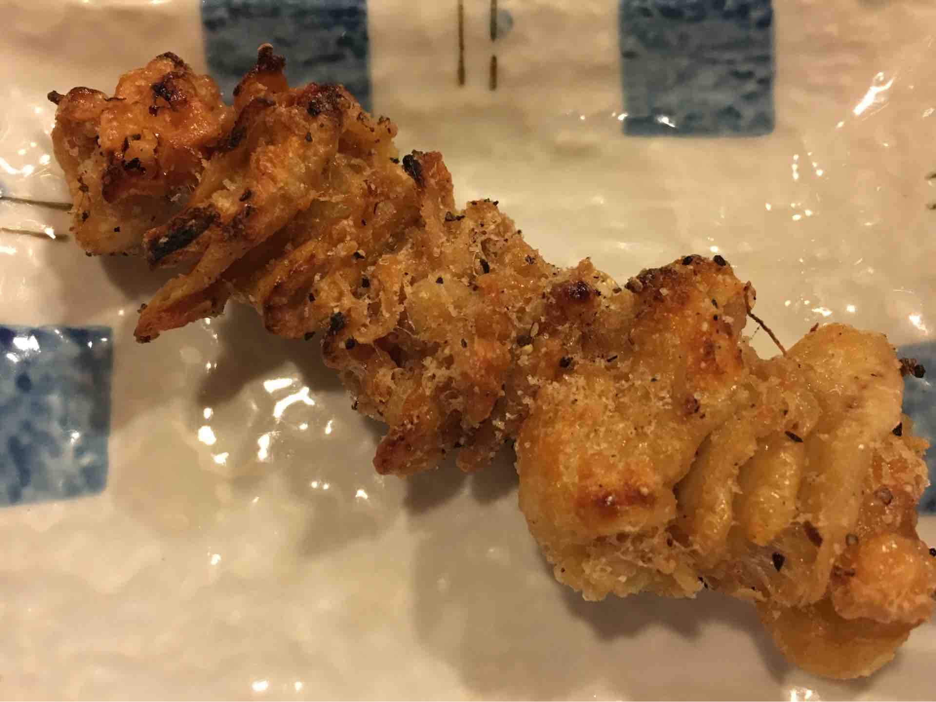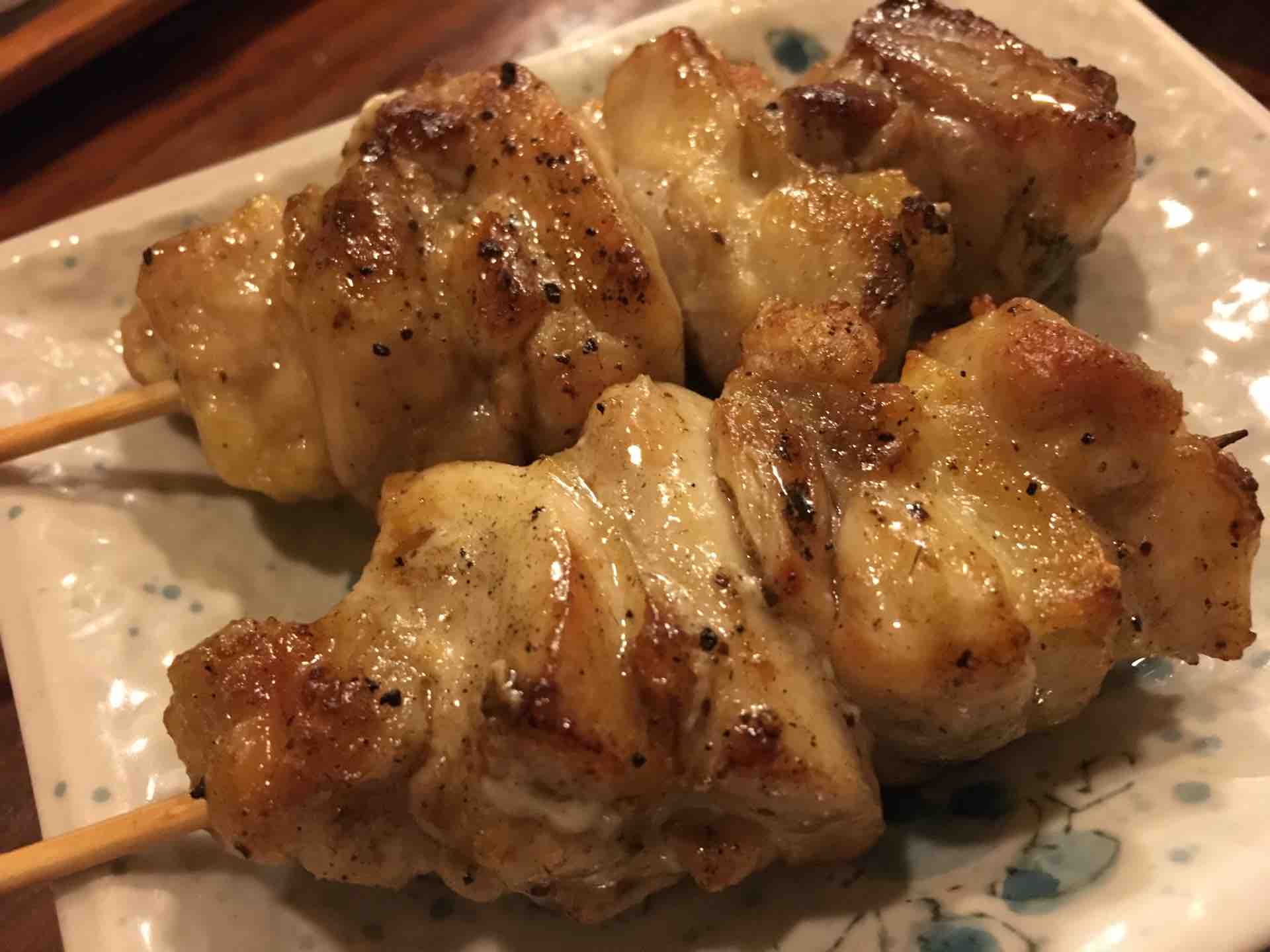 ぼんじりと鳥皮はどの店でも必ず頼むことにしている。特に名古屋で美味しいぼんじりはほぼ皆無。メニューにない不届きな店も多いが、この店のぼんは合格だ。とても美味しかった。鳥皮はパリパリで、これはこれでオッケーである。