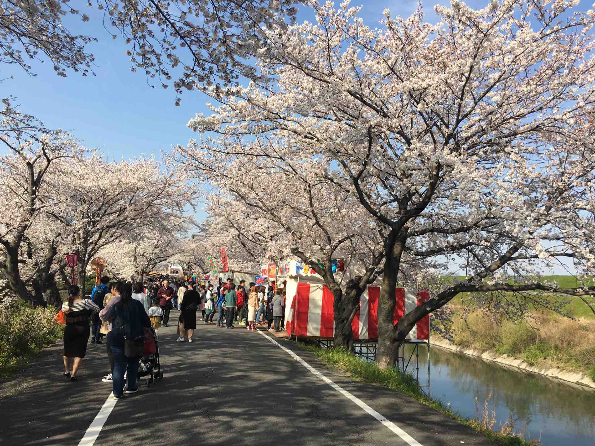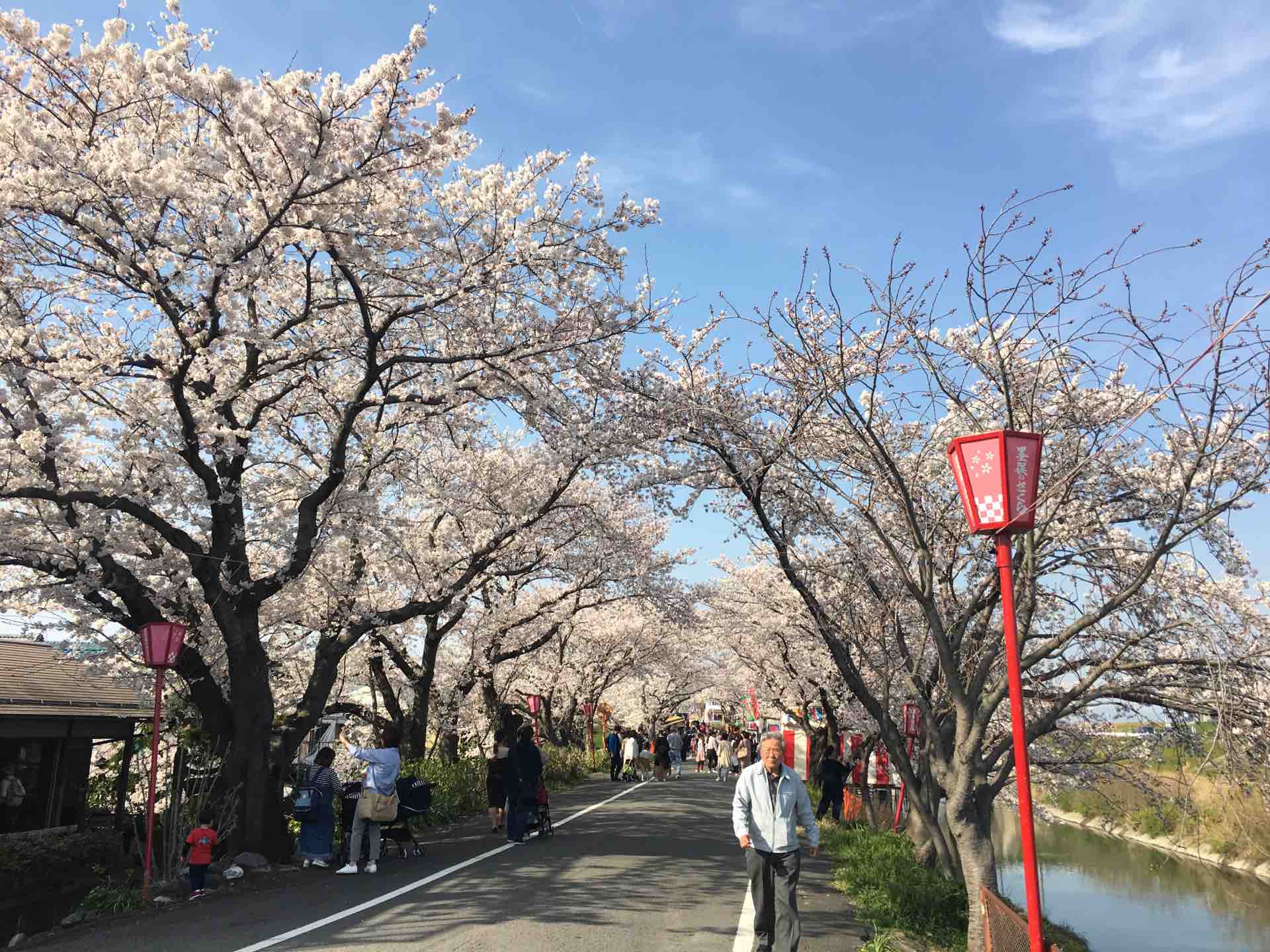 トンネルのような桜の花道には売店が立ち並び、やっと賑わいが感じられる。ここへ来るのは誰もが車でやって来るため、バスを利用する者などほとんどいない。だから歩いていても車がどんどん交差する。本当に本当にこのあたりは歩行者に残酷なエリアだ。歩きにくい。