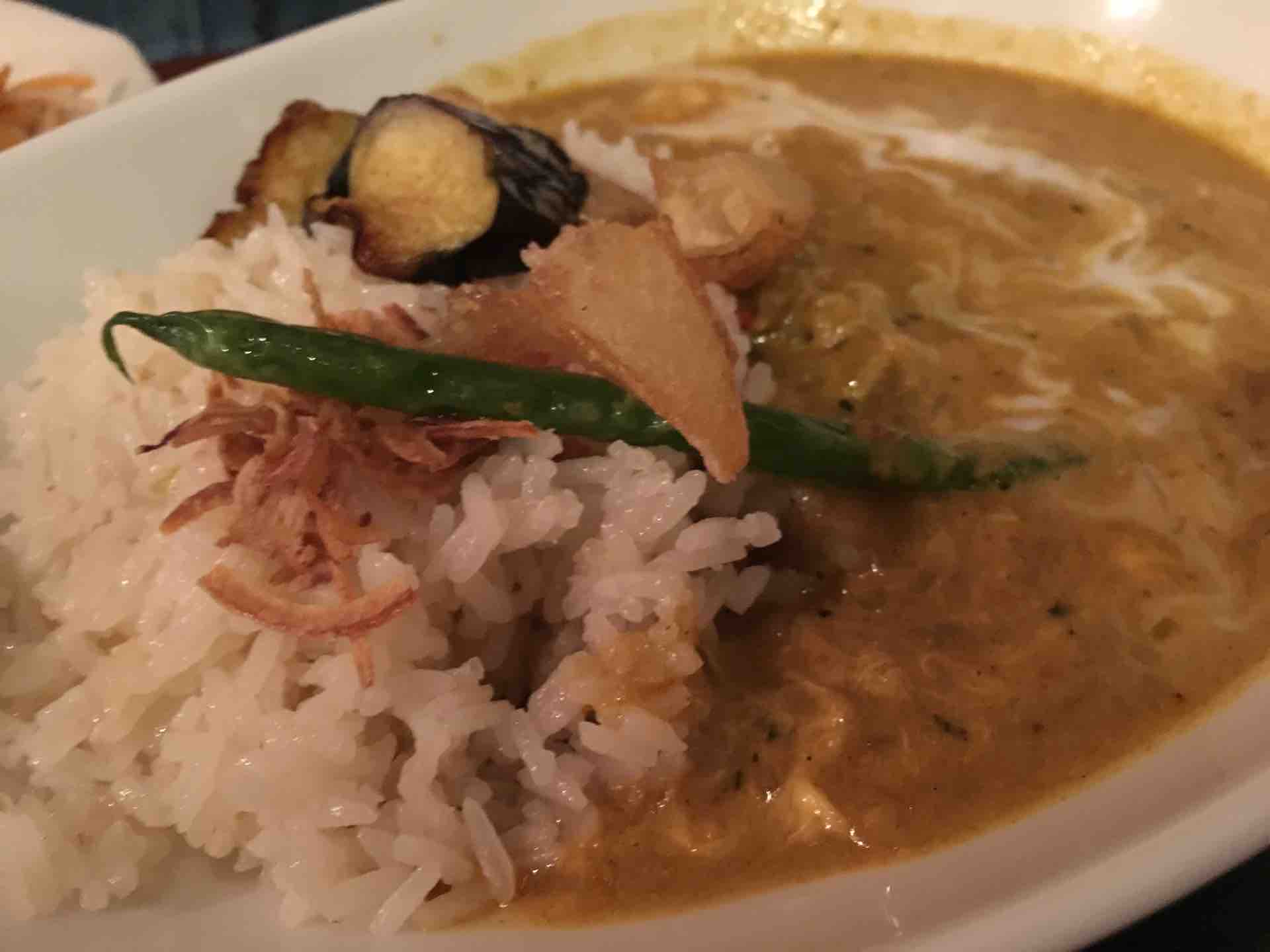 ランチメニューには相変わらずシーフードカレーのセットなどもあるのだが、オプションで頼んだカニのフライが実においしかった。カニを甲羅ごとフライにすると食べやすい。