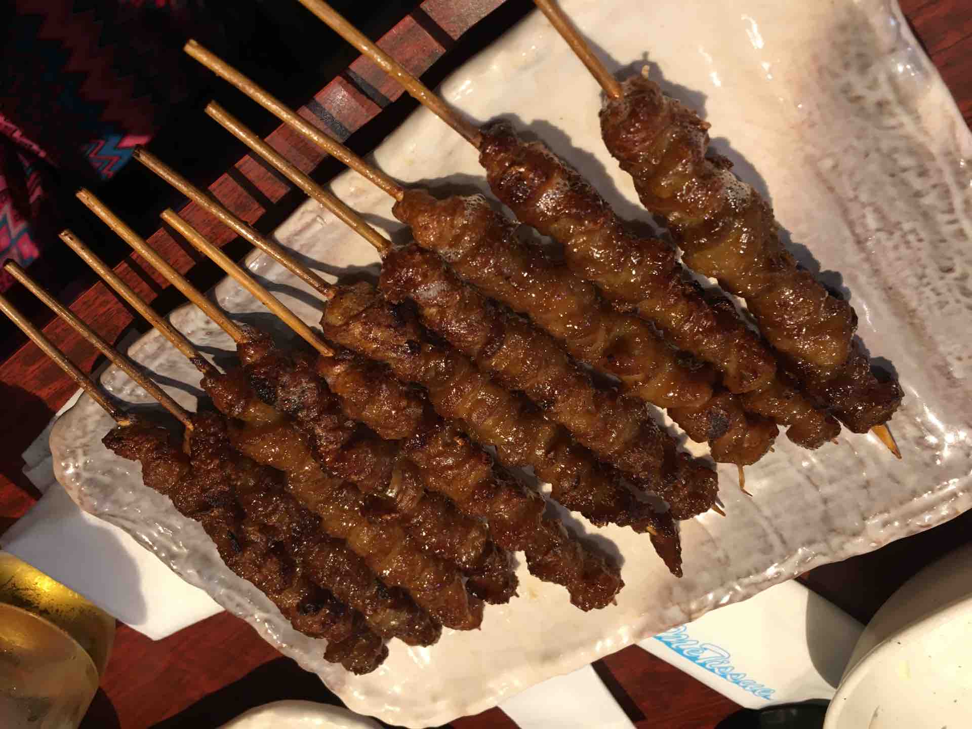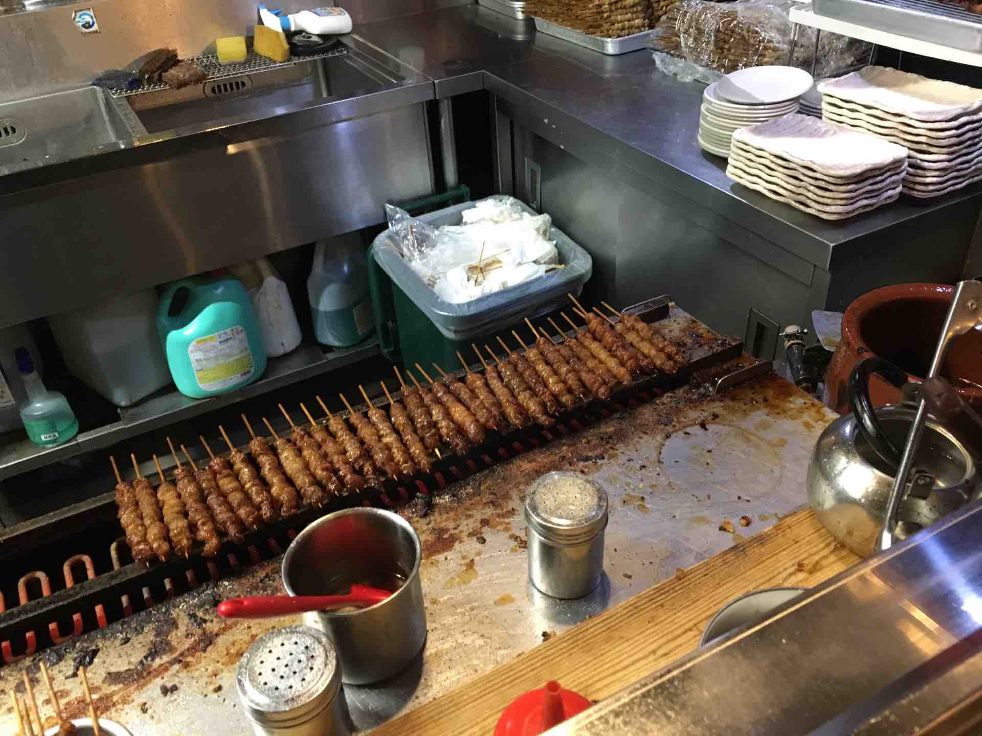一本税別99円と安いので大量にオーダーする。一口で一気に食べられるのが魅力。タレもうまい。どのお客さんも長居はしない。17時半の開店前から列ができるほどの人気店で賑わっていた。目標が達成できて大満足だ。