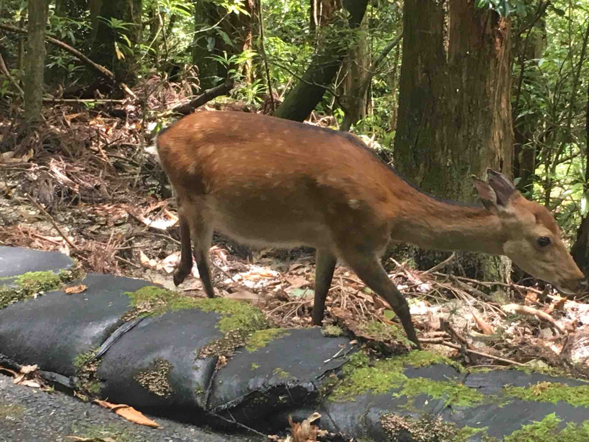 宮之浦から90分ほど走ると山の奥にヤクスギランドがある。なんと道端に鹿や猿がいる。