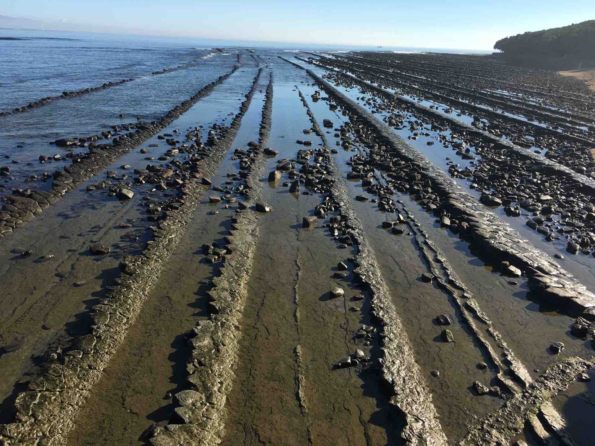 着いた青島駅は無人駅で、そのまま青島神社のあたりまで歩く。通称鬼の洗濯岩だ。洗濯板とタライを知らない世代にこの意味を唱えてもわかるまい。痩せている方を「洗濯板」などと言ったこともある。今はデブだが、昔は洗濯板だった。それにしても自然現象でこのような地形が海にできるとは驚きだ。圧倒された。