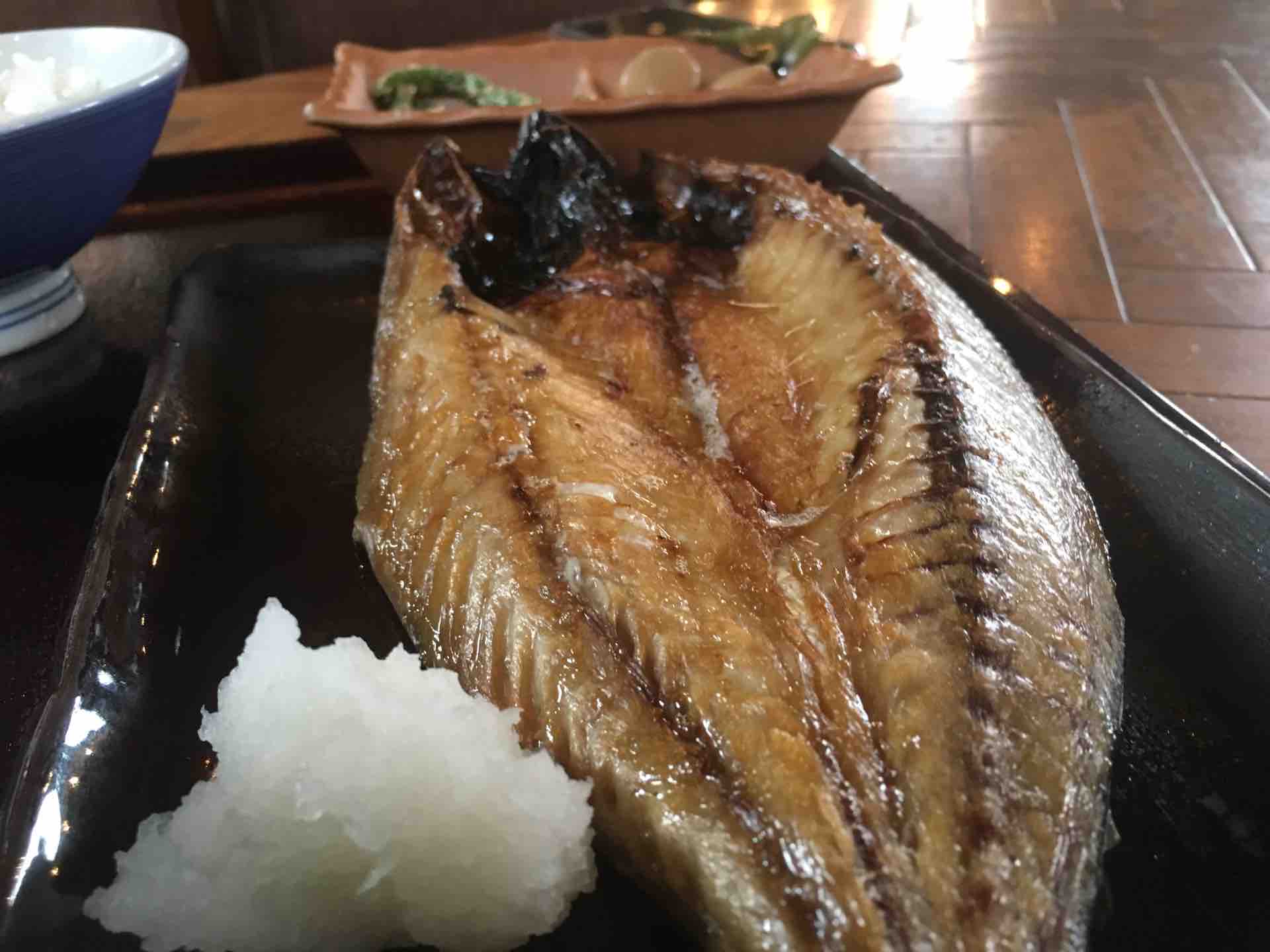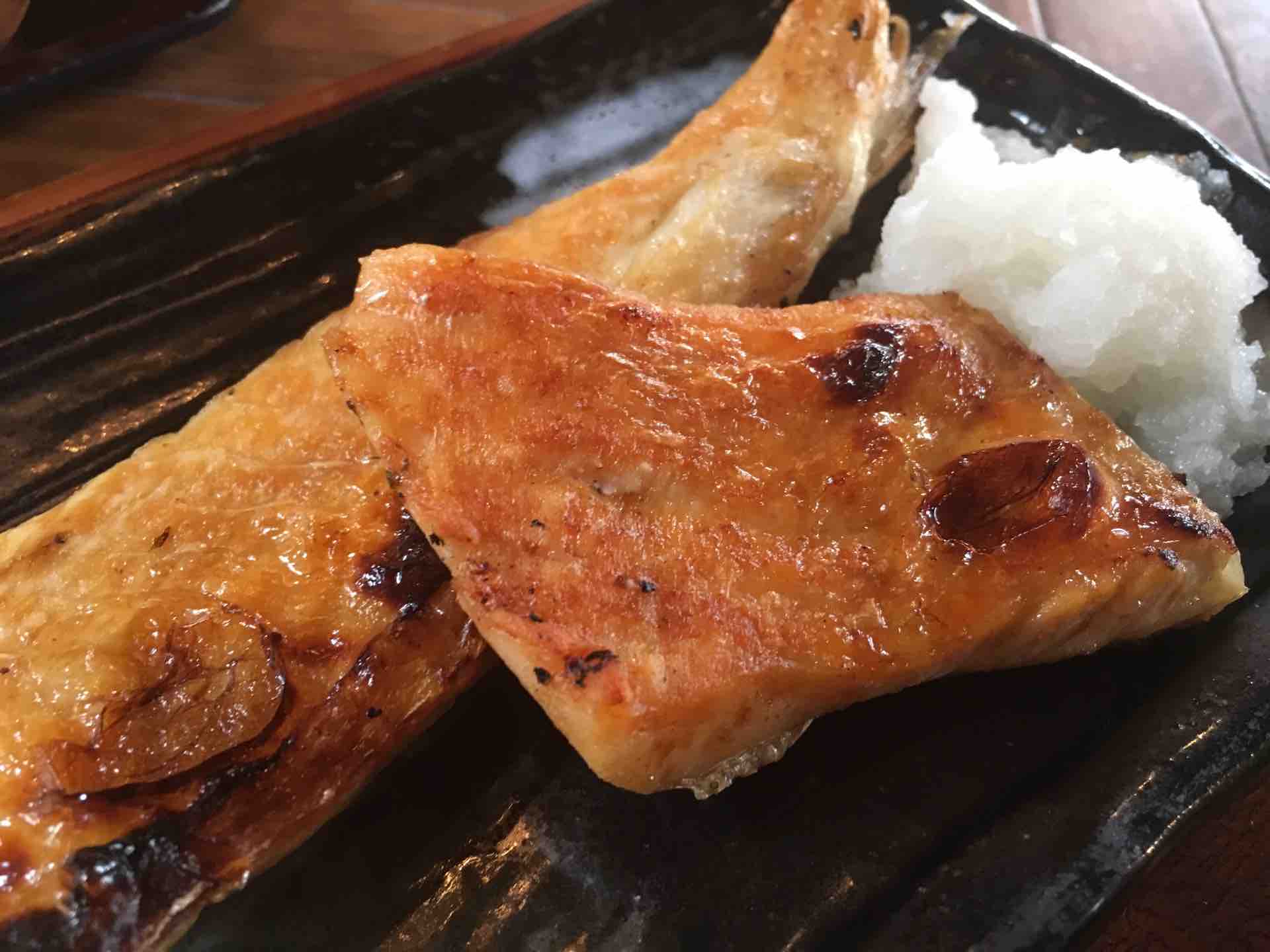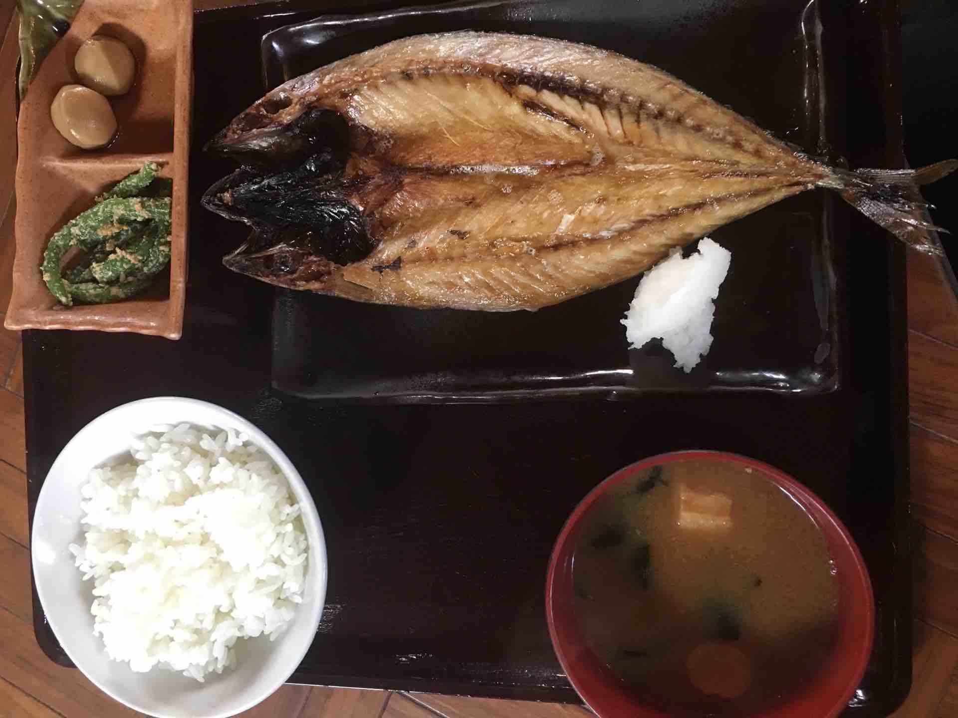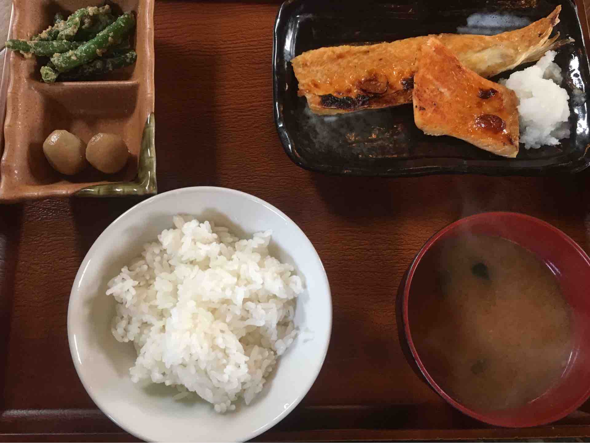 朝、シャケと茶碗半分のごはんとみそ汁。