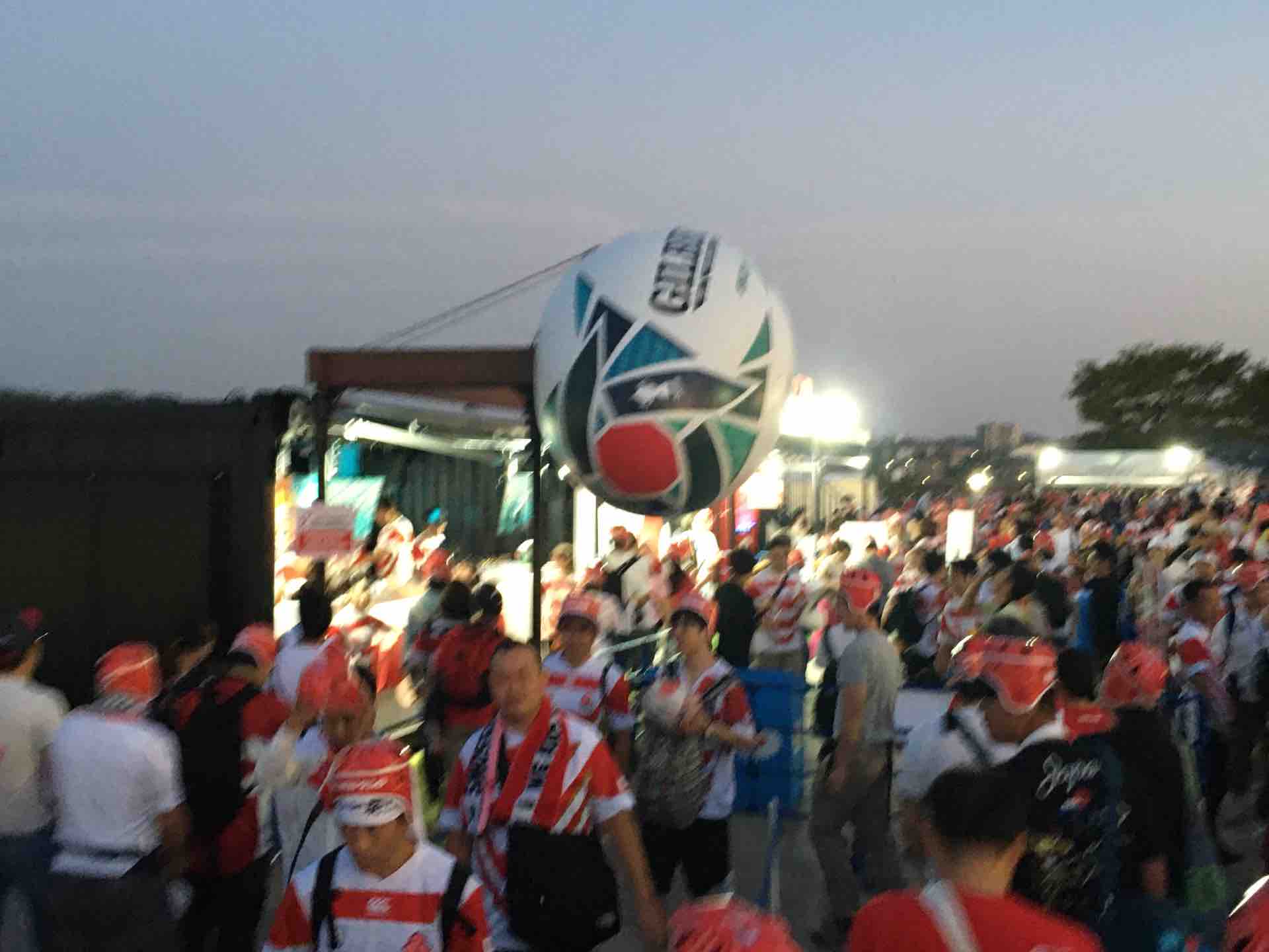 午前中の仕事を終え、昼ランチをして家に帰り、着替えて豊田市に向かう。移動中の電車はブロッサムズのユニフォームで満席。パブリックビューイングで日本戦の前のオーストラリアやイングランドの試合を見ようかなぁと期待したが、午後2時の時点でスカイドームは入場制限。19時半からの日本戦のために早くから並んでいたのか。しかたなくプラプラ時間をつぶして早めにスタジアムへ。