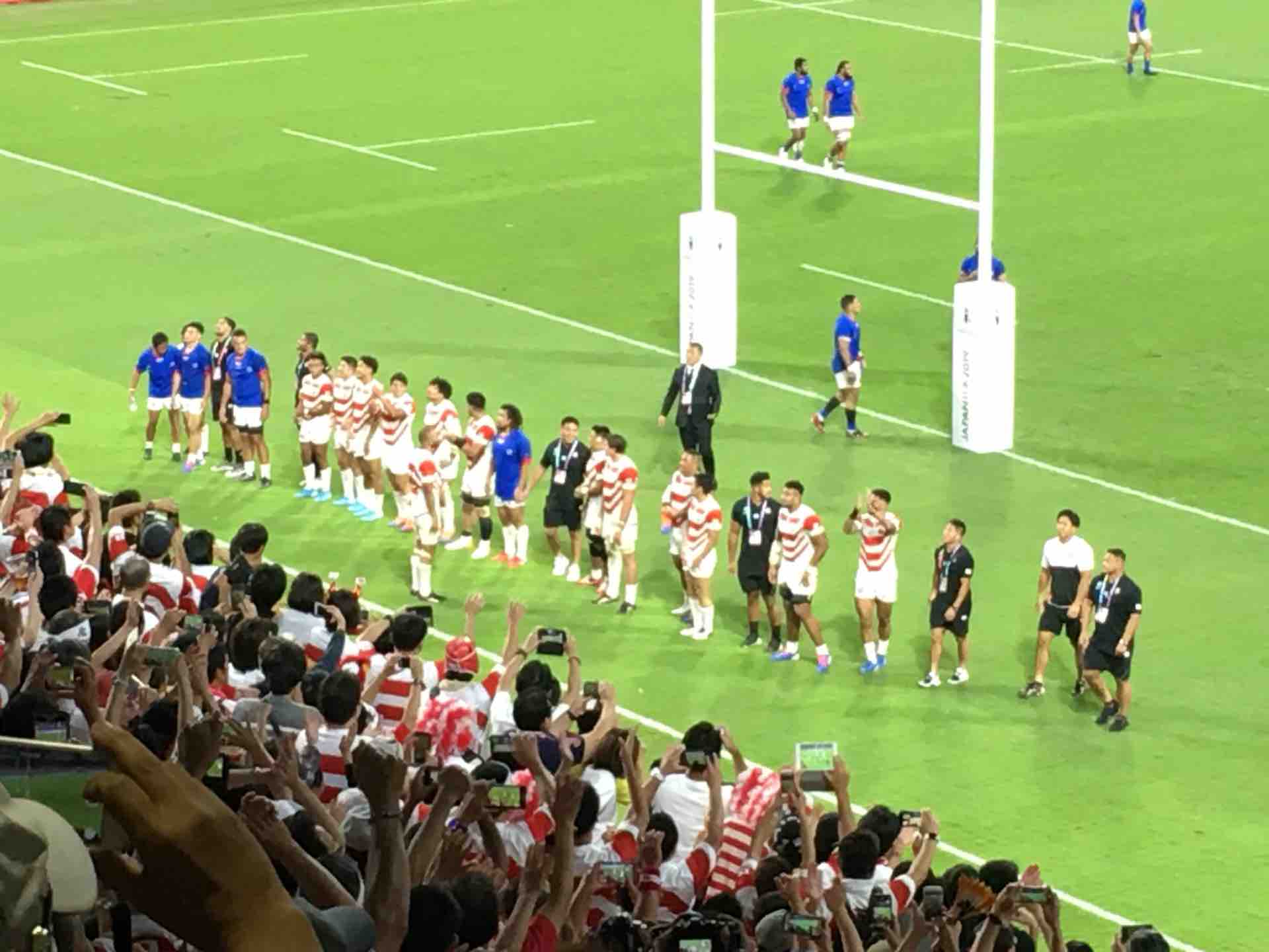 サモア戦の前、君が代を大声で歌うときに、心からその場所にいる自分に感動して涙する。豊田スタジアムの40,000人が折り重なる。