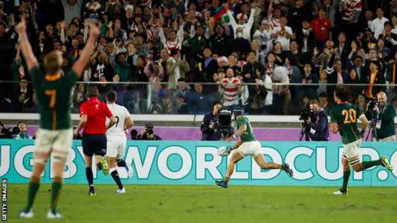 オールブラックスを破ったエディ・ジョーンズ率いるイングランドはヘンリー王子が応援に駆け付け、南アフリカはラマポーザ大統領がスタジアムで応援した。そしてノーサイド。リーチ・マイケルが運転する車からリッチー・マコウがエリス杯を持って降りる。そして舞台に掲げられたエリス杯には南アフリカの文字が刻まれる。