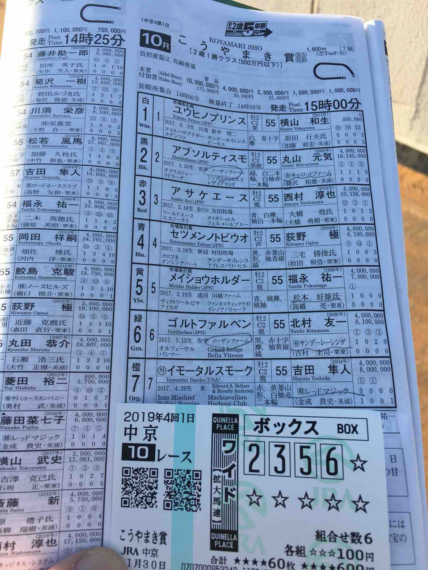 メインは中山のステイヤーズS。8歳馬のオジュウチョウサンは障害場として記録的な活躍をして平場のG1有馬記念でも人気になった馬。この日も見せ場があって興奮した。オジュウチョウサンの複勝馬券を大事にしよう!